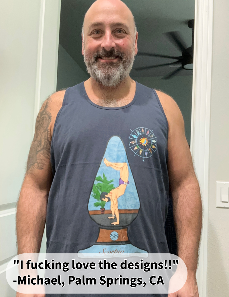 Step inside and feel the industrial slut fantasy come to life. We’re talking bold, colorful, and unapologetically gay designs on tees, tanks, cum rags, towels, hats, and more.